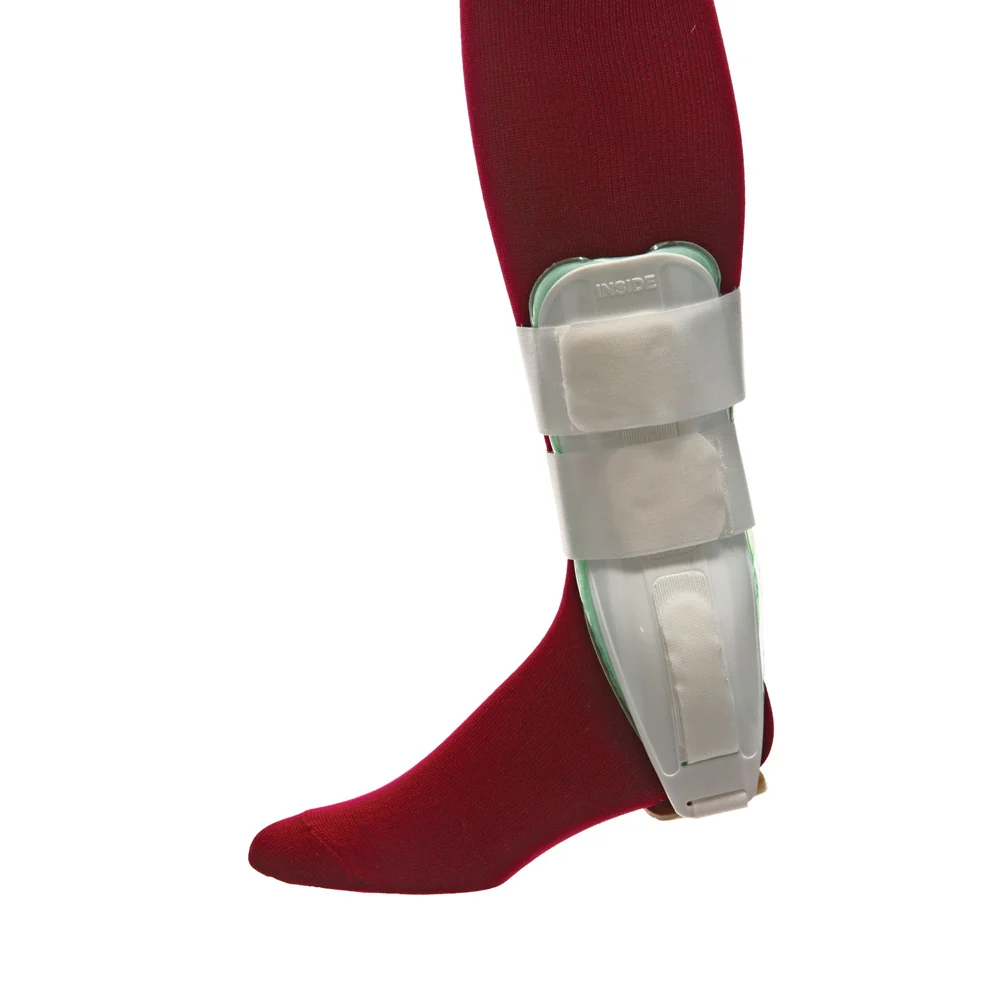 The rigid contoured shell of the Air Light Ankle Brace can provide the immobilization required for sprains, fractures and chronic instability and helps accelerate rehabilitation. Inflatable air bladder creates compression, helping to enhance circulation and reduce swelling. Medical grade, perforated brushed tricot lining allows airflow and provides comfort.
